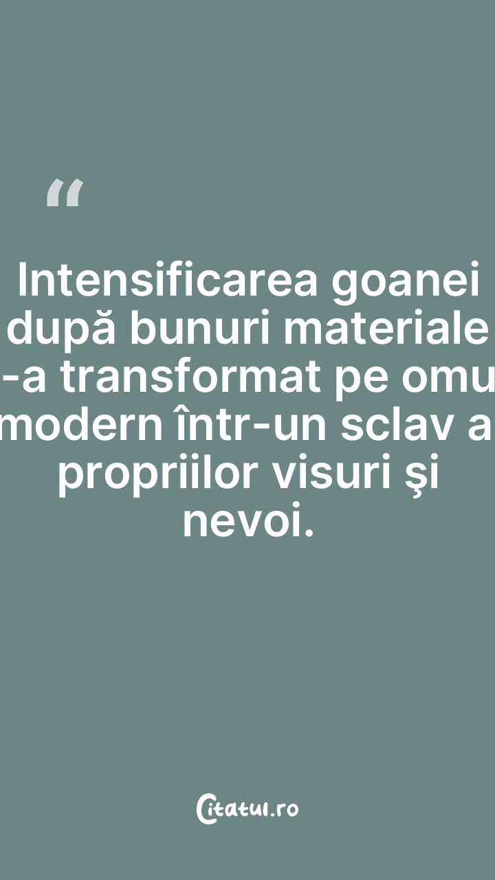 Intensificarea goanei după bunuri materiale l-a transformat pe omul modern într-un sclav al propriilor visuri şi nevoi.