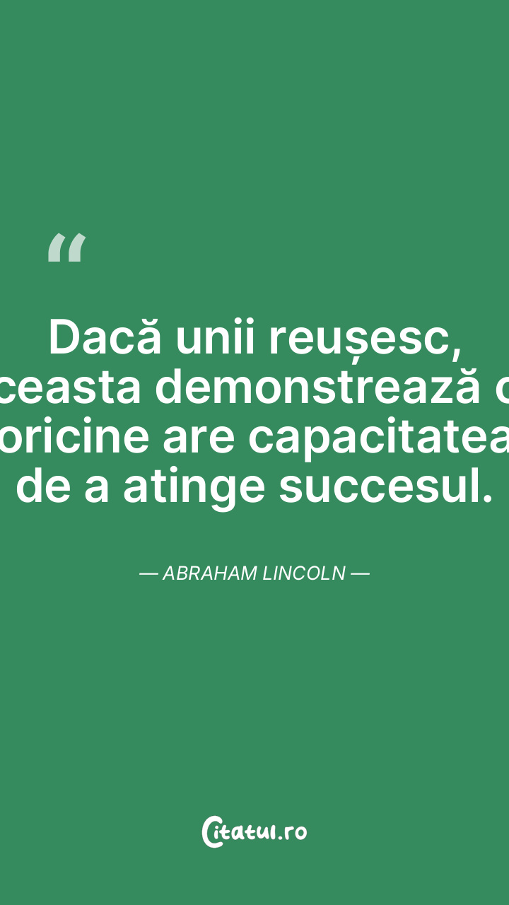 Dacă unii reușesc, aceasta demonstrează că oricine are capacitatea de a atinge succesul. Abraham Lincoln