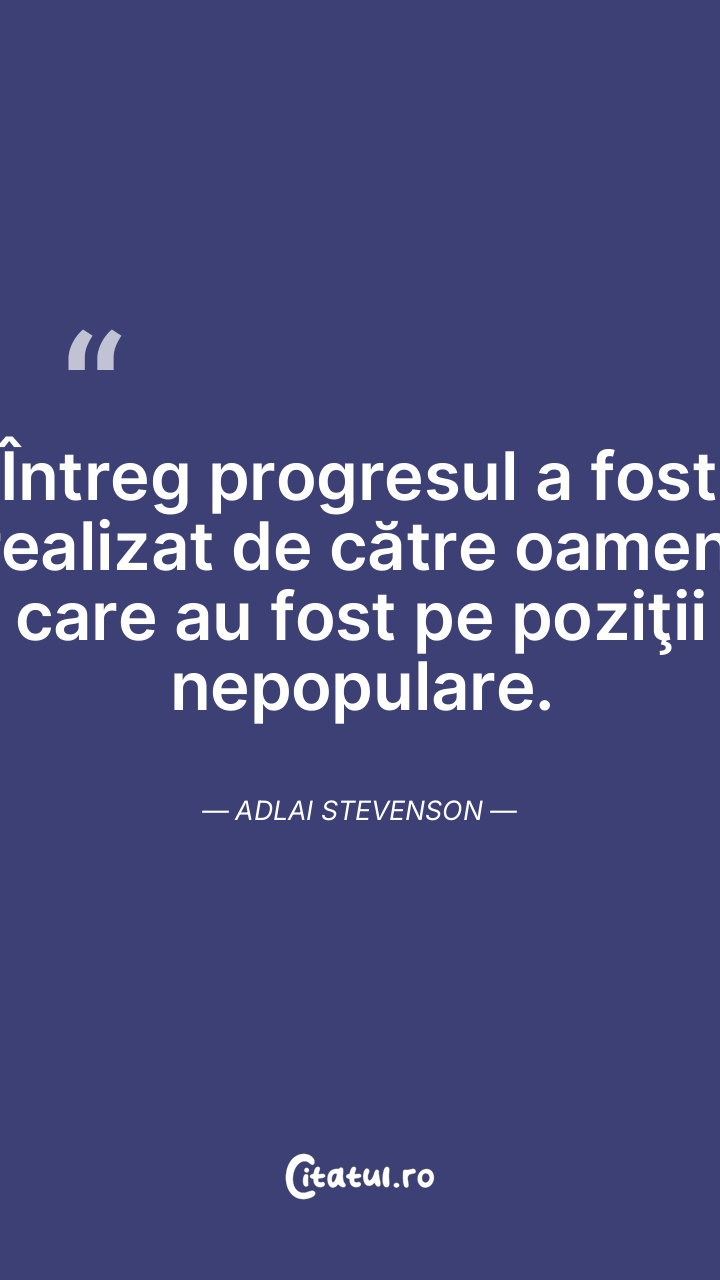 Întreg progresul a fost realizat de către oameni care au fost pe poziţii nepopulare. Adlai Stevenson