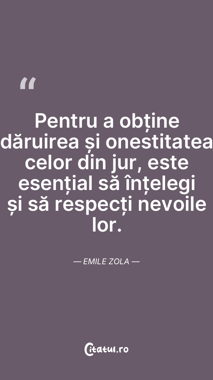 Pentru a obține dăruirea și onestitatea celor din jur, este esențial să înțelegi și să respecți nevoile lor. Emile Zola