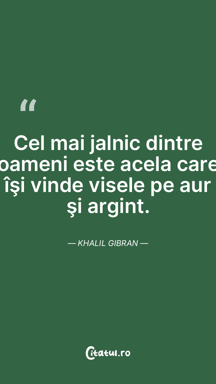 Cel mai jalnic dintre oameni este acela care îşi vinde visele pe aur şi argint. Khalil Gibran