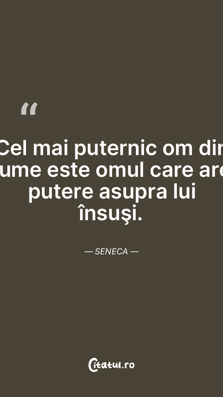 Cel mai puternic om din lume este omul care are putere asupra lui însuşi. Seneca