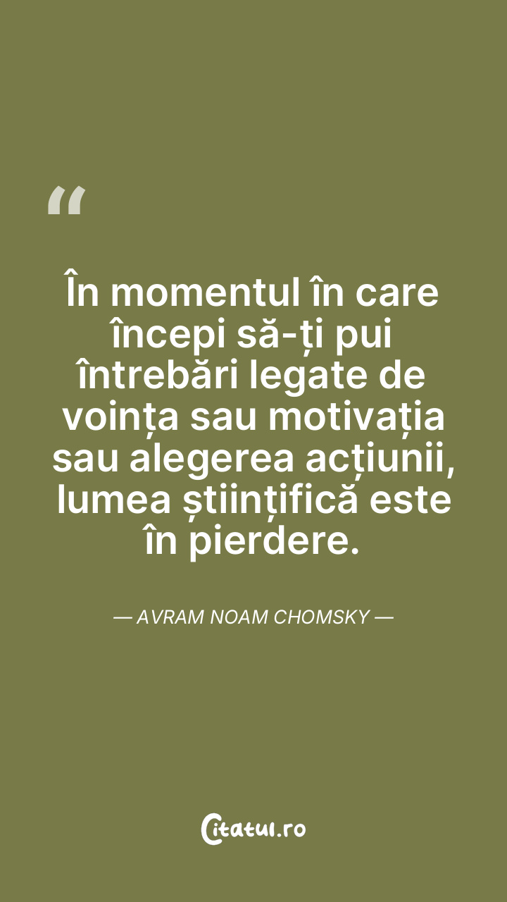 În momentul în care începi să-ți pui întrebări legate de voința sau motivația sau alegerea acțiunii, lumea științifică este în pierdere. Avram Noam Chomsky