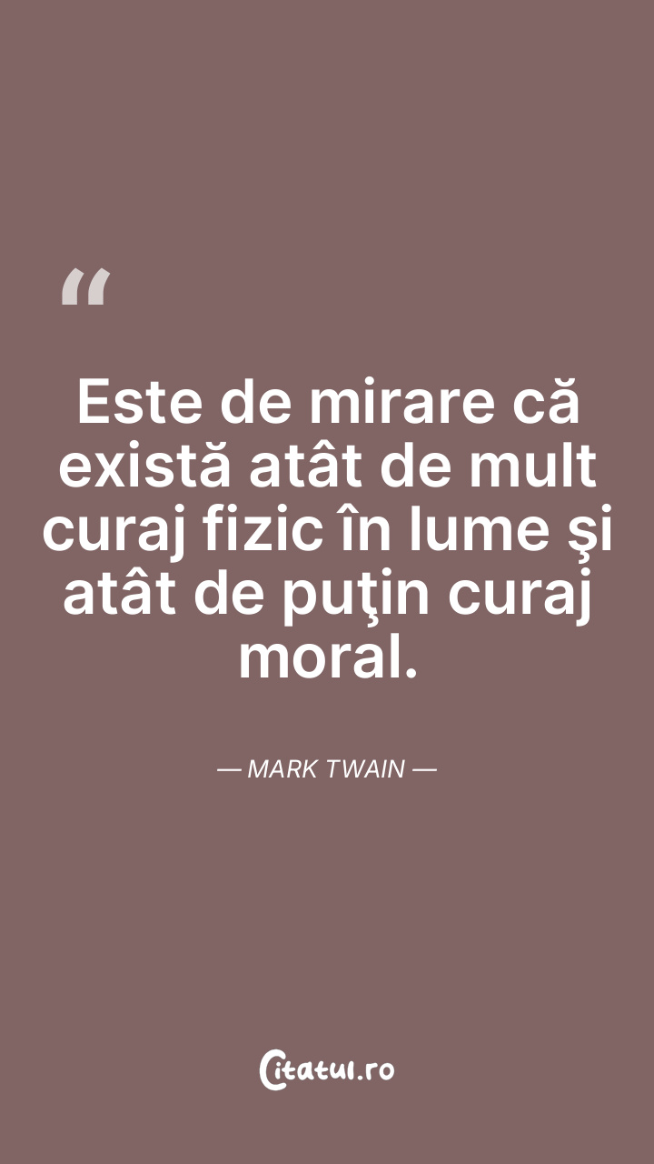 Este de mirare că există atât de mult curaj fizic în lume şi atât de puţin curaj moral. Mark Twain