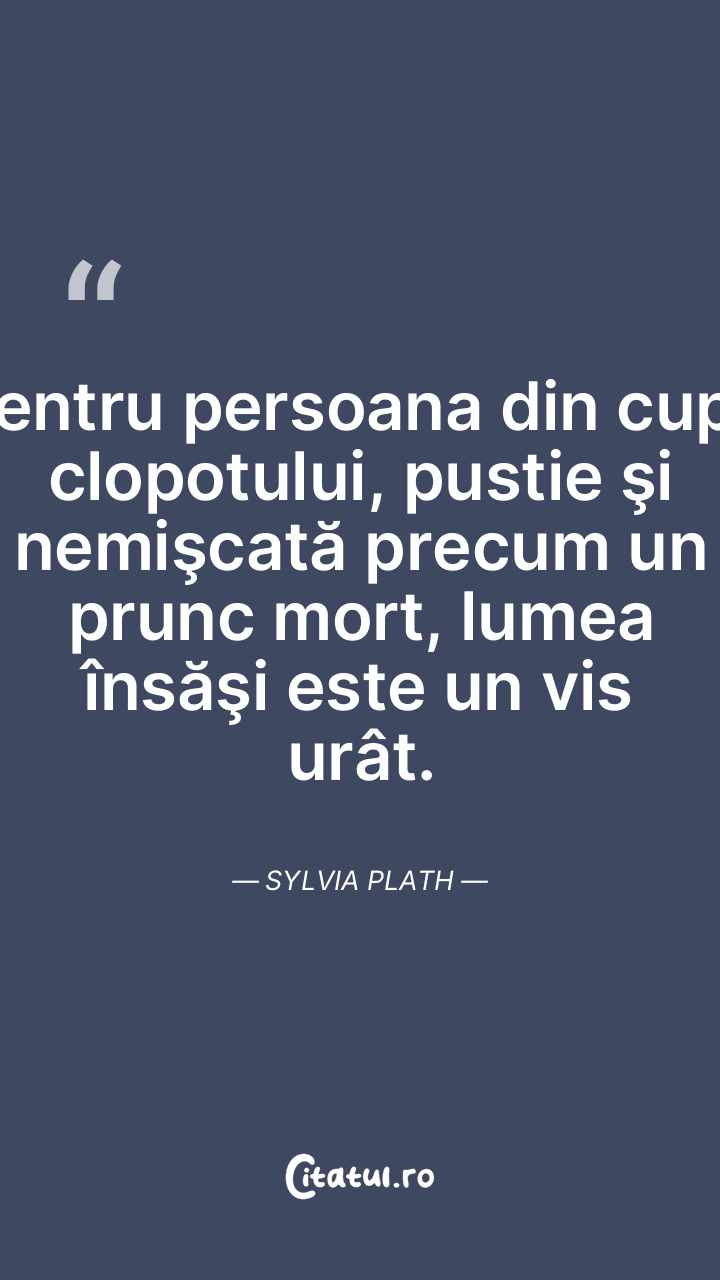 Pentru persoana din cupa clopotului, pustie şi nemişcată precum un prunc mort, lumea însăşi este un vis urât. Sylvia Plath