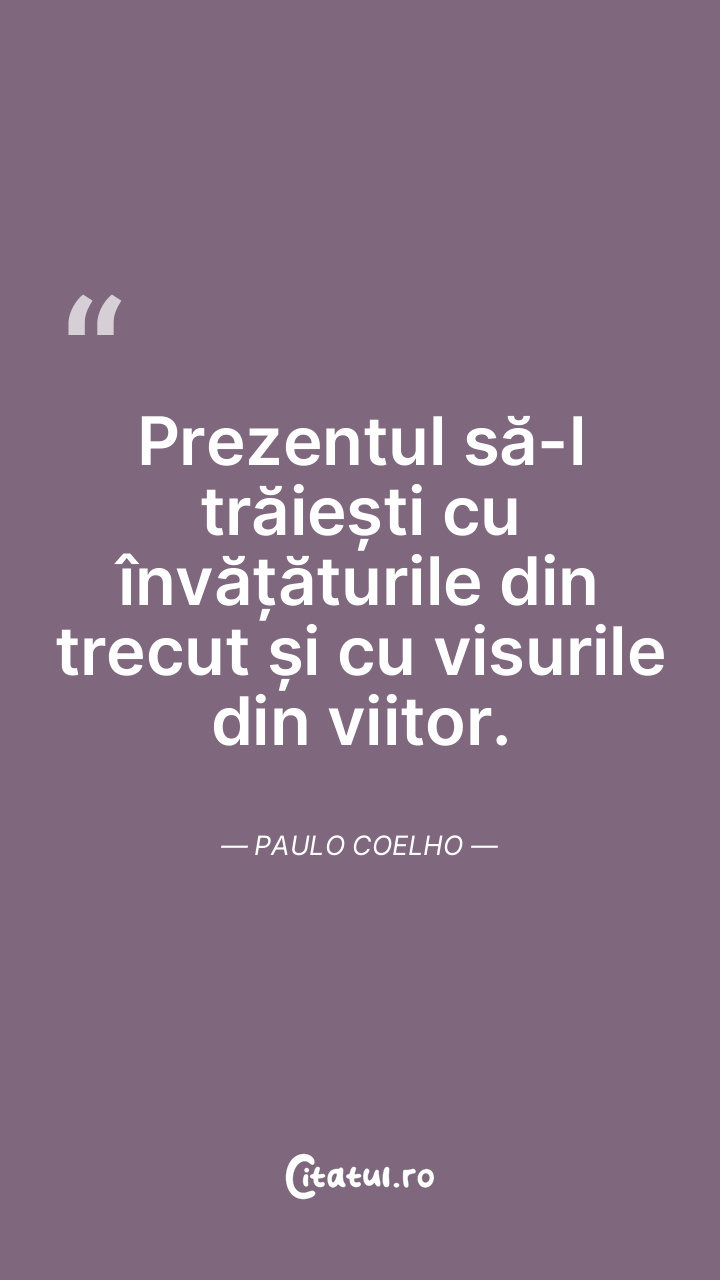 Prezentul să-l trăiești cu învățăturile din trecut și cu visurile din viitor. Paulo Coelho