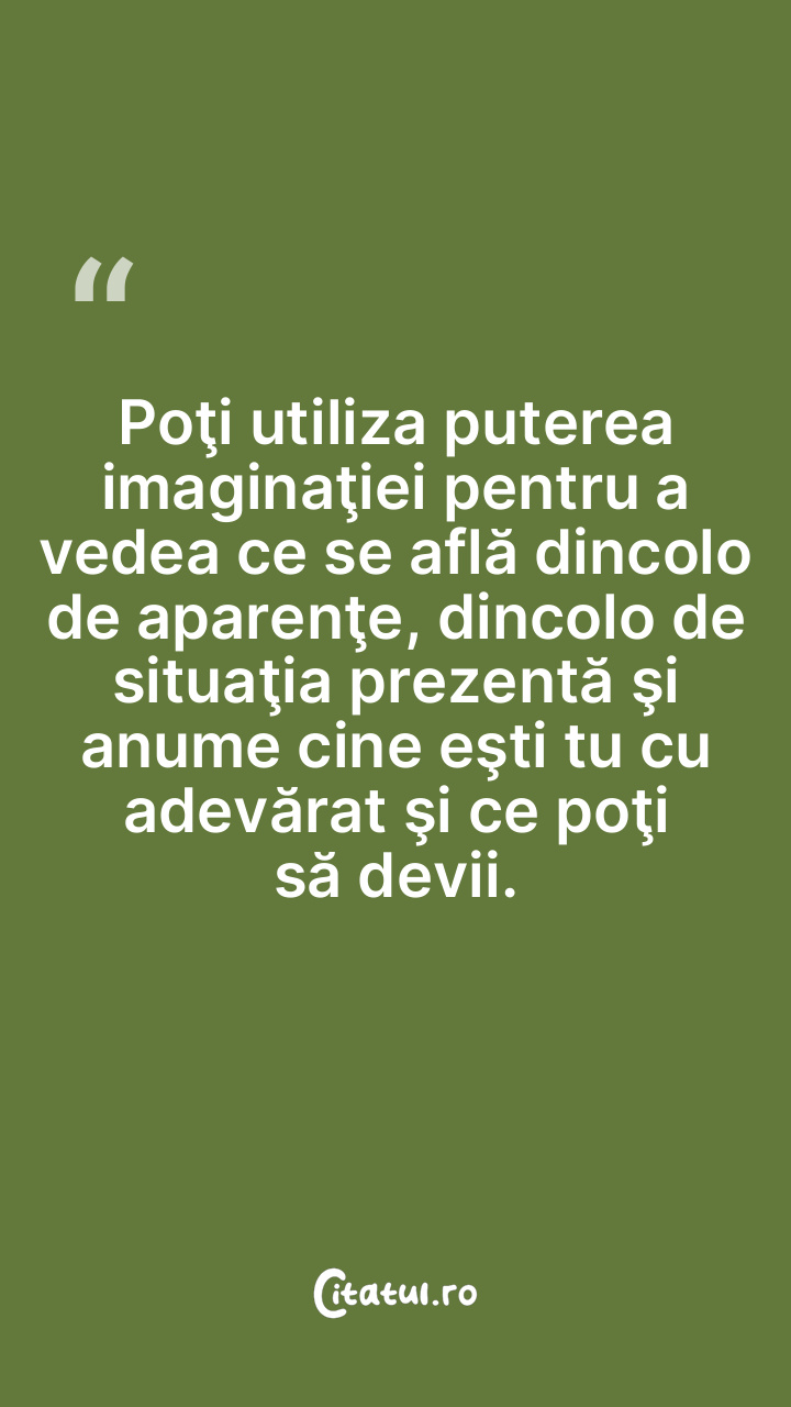 Poţi utiliza puterea imaginaţiei pentru a vedea ce se află dincolo de aparenţe, dincolo de situaţia prezentă şi anume cine eşti tu cu adevărat şi ce poţi să devii.
