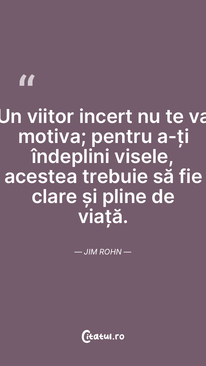 Un viitor incert nu te va motiva; pentru a-ți îndeplini visele, acestea trebuie să fie clare și pline de viață. Jim Rohn