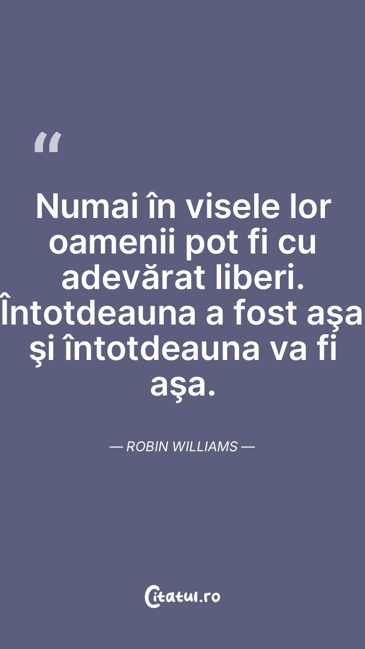 Numai în visele lor oamenii pot fi cu adevărat liberi. Întotdeauna a fost aşa şi întotdeauna va fi aşa. Robin Williams