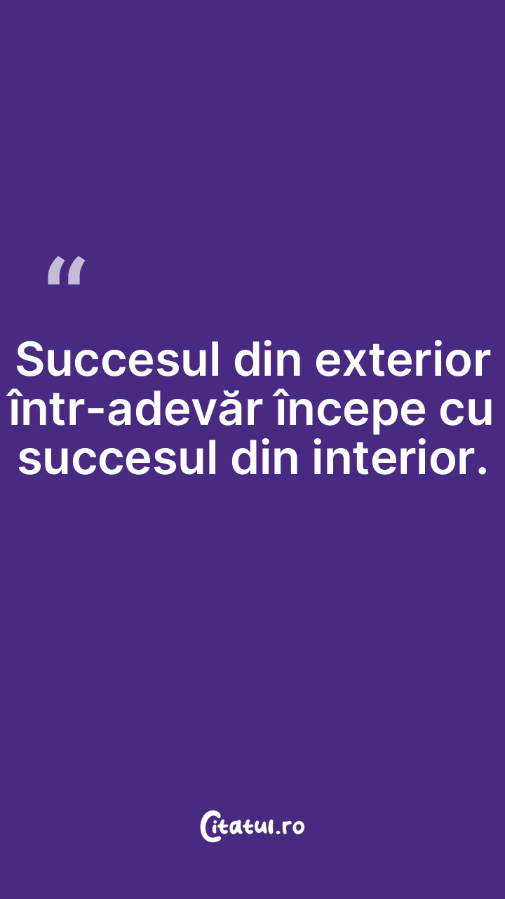 Succesul din exterior într-adevăr începe cu succesul din interior.