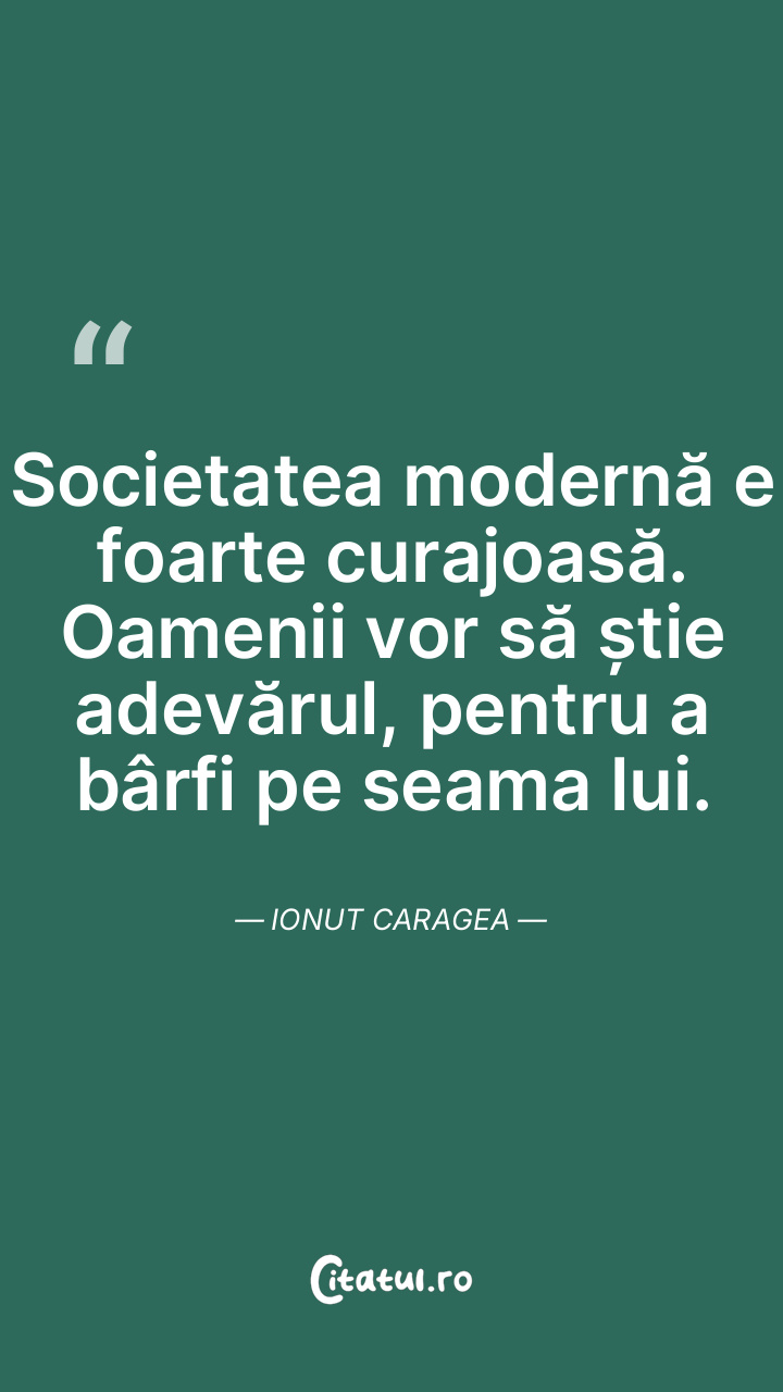 Societatea modernă e foarte curajoasă. Oamenii vor să știe adevărul, pentru a bârfi pe seama lui. Ionut Caragea