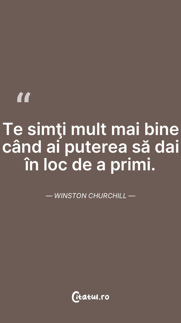 Te simţi mult mai bine când ai puterea să dai în loc de a primi. Winston Churchill