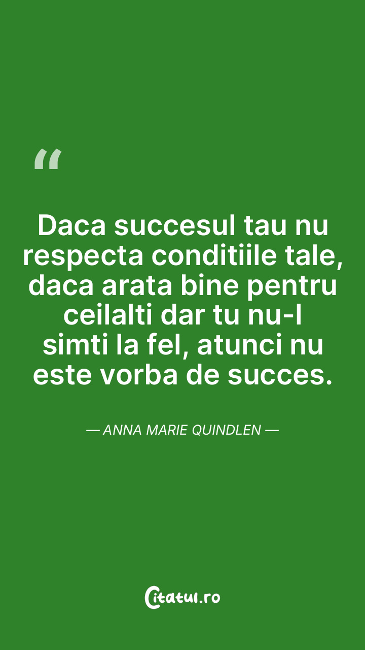 Daca succesul tau nu respecta conditiile tale, daca arata bine pentru ceilalti dar tu nu-l simti la fel, atunci nu este vorba de succes. Anna Marie Quindlen