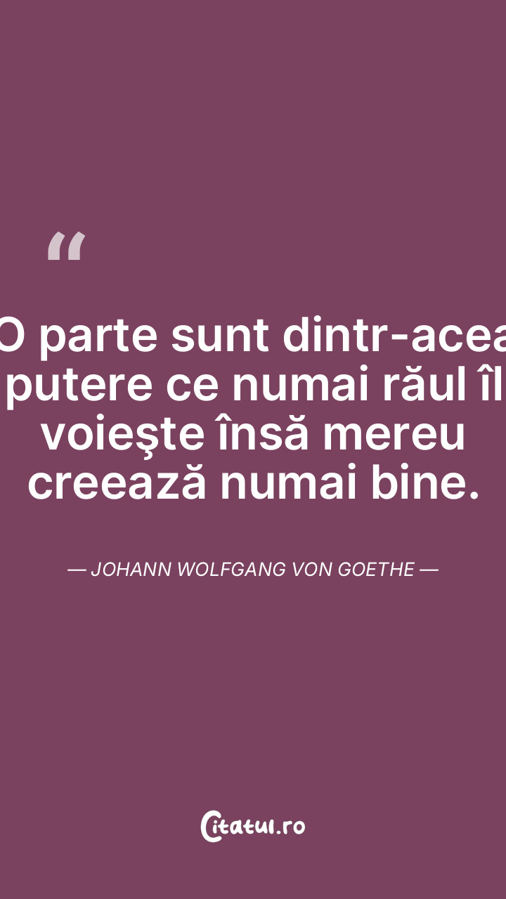 O parte sunt dintr-acea putere ce numai răul îl voieşte însă mereu creează numai bine. Johann Wolfgang von Goethe