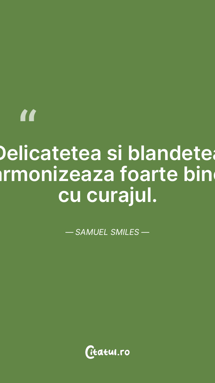 Delicatetea si blandetea armonizeaza foarte bine cu curajul. Samuel Smiles