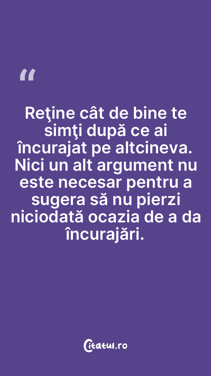 Reţine cât de bine te simţi după ce ai încurajat pe altcineva. Nici un alt argument nu este necesar pentru a sugera să nu pierzi niciodată ocazia de a da încurajări.
