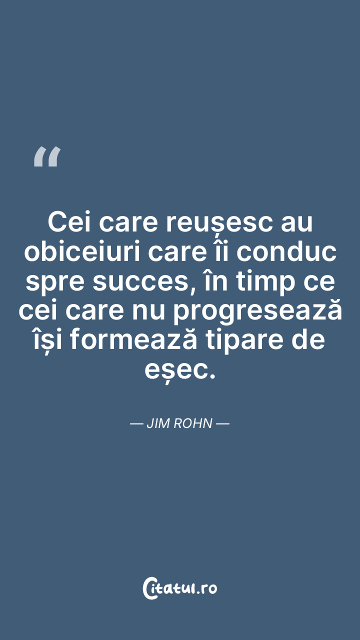 Cei care reușesc au obiceiuri care îi conduc spre succes, în timp ce cei care nu progresează își formează tipare de eșec. Jim Rohn