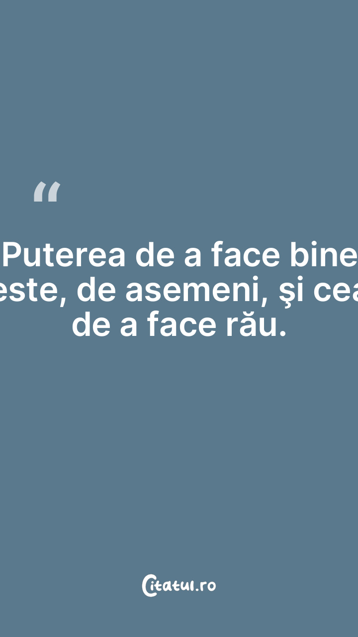 Puterea de a face bine este, de asemeni, şi cea de a face rău.