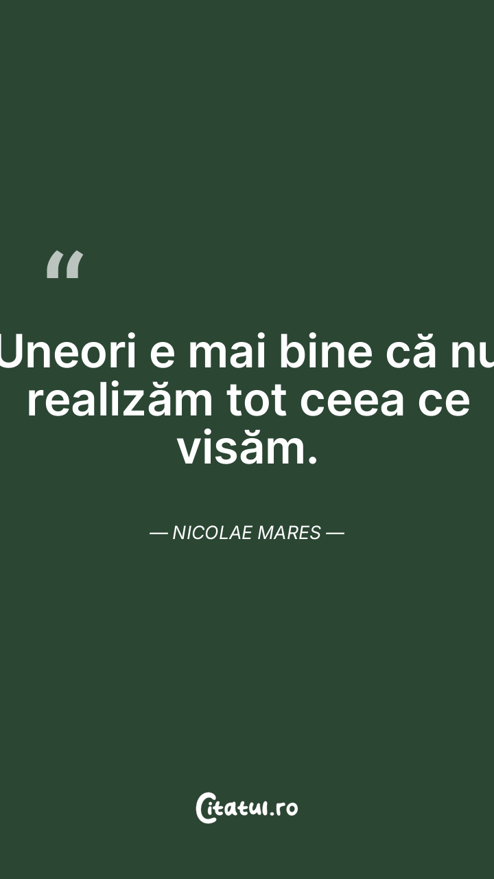 Uneori e mai bine că nu realizăm tot ceea ce visăm. Nicolae Mares