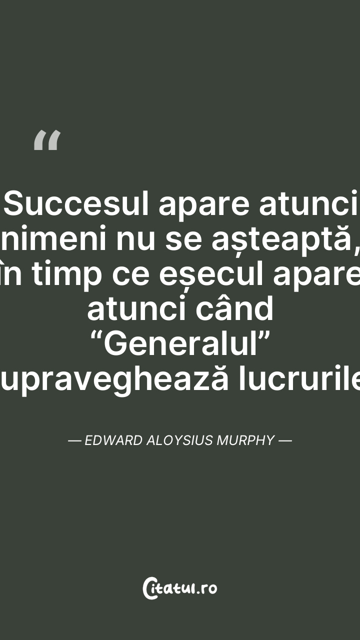 Succesul apare atunci nimeni nu se așteaptă, în timp ce eșecul apare atunci când “Generalul” supraveghează lucrurile. Edward Aloysius Murphy