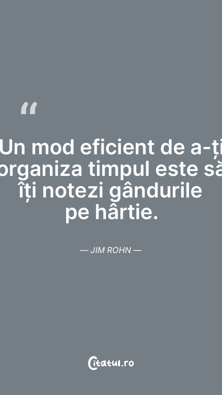 Un mod eficient de a-ți organiza timpul este să îți notezi gândurile pe hârtie. Jim Rohn