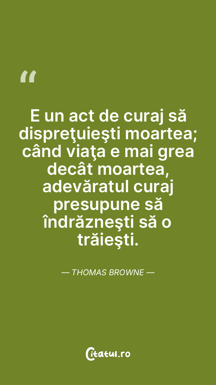 E un act de curaj să dispreţuieşti moartea; când viaţa e mai grea decât moartea, adevăratul curaj presupune să îndrăzneşti să o trăieşti. Thomas Browne