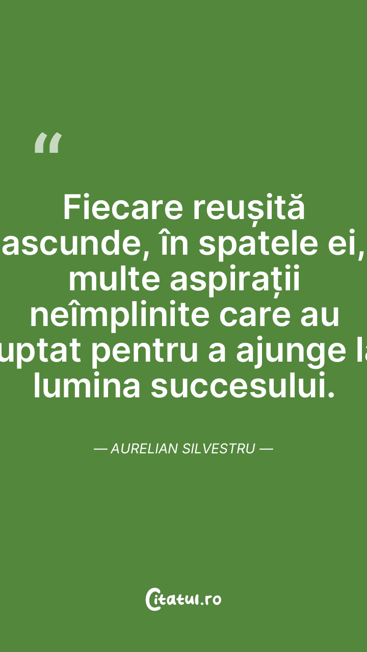 Fiecare reușită ascunde, în spatele ei, multe aspirații neîmplinite care au luptat pentru a ajunge la lumina succesului. Aurelian Silvestru
