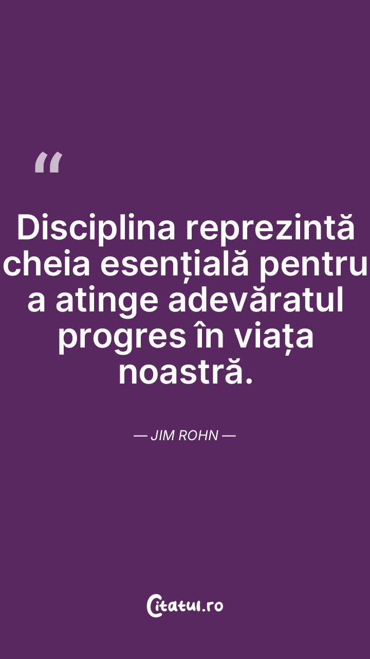 Disciplina reprezintă cheia esențială pentru a atinge adevăratul progres în viața noastră. Jim Rohn