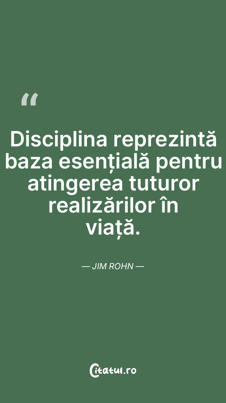 Disciplina reprezintă baza esențială pentru atingerea tuturor realizărilor în viață. Jim Rohn