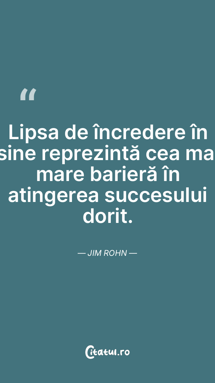 Lipsa de încredere în sine reprezintă cea mai mare barieră în atingerea succesului dorit. Jim Rohn