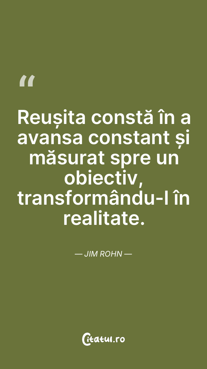 Reușita constă în a avansa constant și măsurat spre un obiectiv, transformându-l în realitate. Jim Rohn
