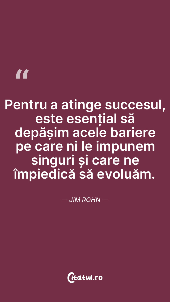 Pentru a atinge succesul, este esențial să depășim acele bariere pe care ni le impunem singuri și care ne împiedică să evoluăm. Jim Rohn