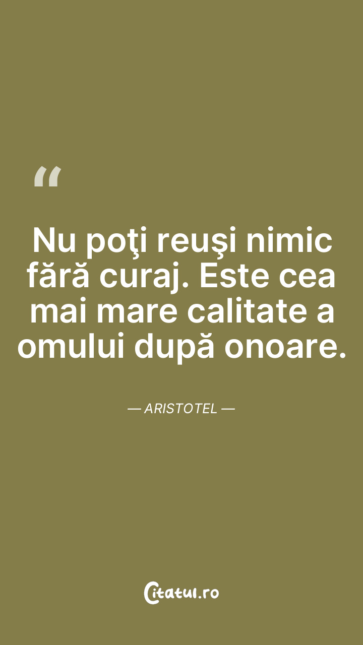 Nu poţi reuşi nimic fără curaj. Este cea mai mare calitate a omului după onoare. Aristotel