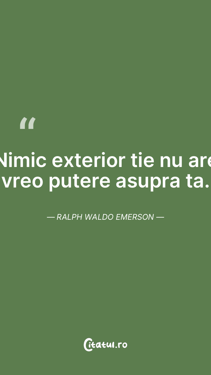 Nimic exterior tie nu are vreo putere asupra ta. Ralph Waldo Emerson