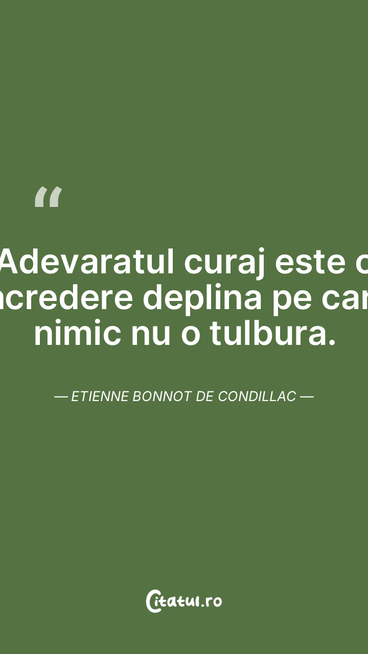Adevaratul curaj este o incredere deplina pe care nimic nu o tulbura. Etienne Bonnot de Condillac