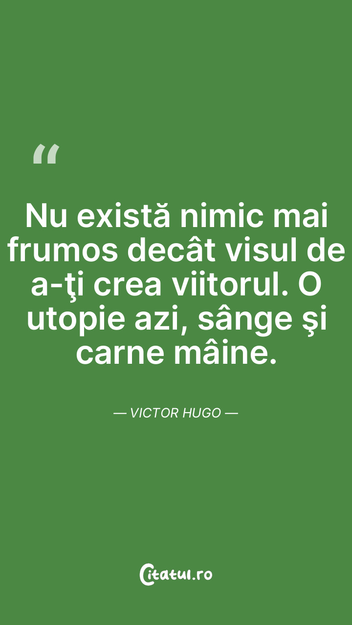 Nu există nimic mai frumos decât visul de a-ţi crea viitorul. O utopie azi, sânge şi carne mâine. Victor Hugo
