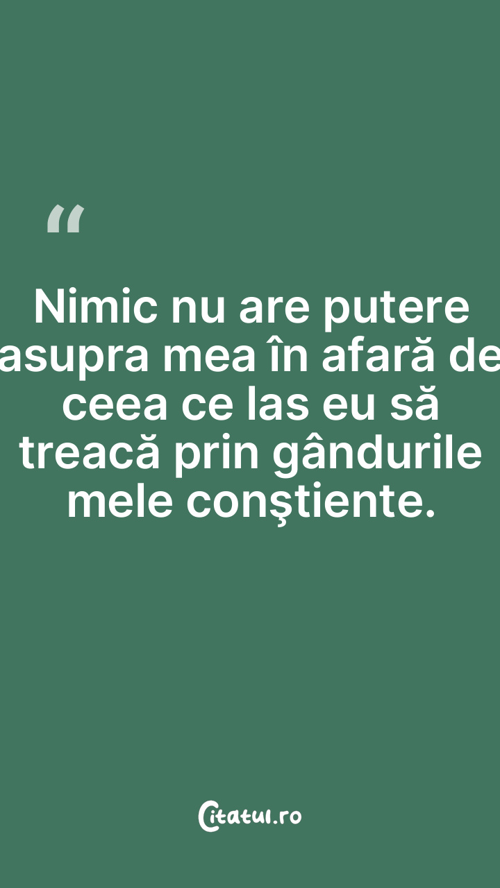 Nimic nu are putere asupra mea în afară de ceea ce las eu să treacă prin gândurile mele conştiente.