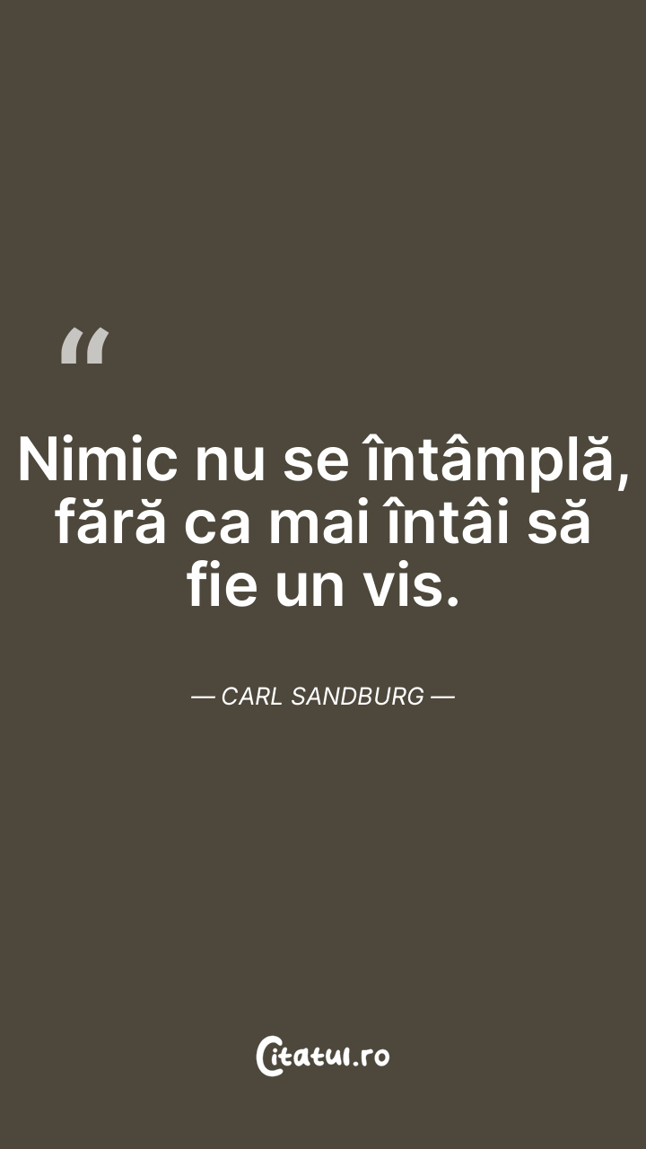 Nimic nu se întâmplă, fără ca mai întâi să fie un vis. Carl Sandburg