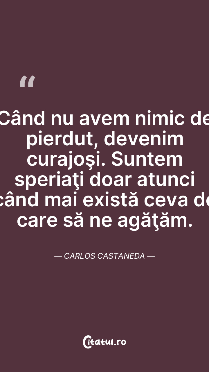 Când nu avem nimic de pierdut, devenim curajoşi. Suntem speriaţi doar atunci când mai există ceva de care să ne agăţăm. Carlos Castaneda