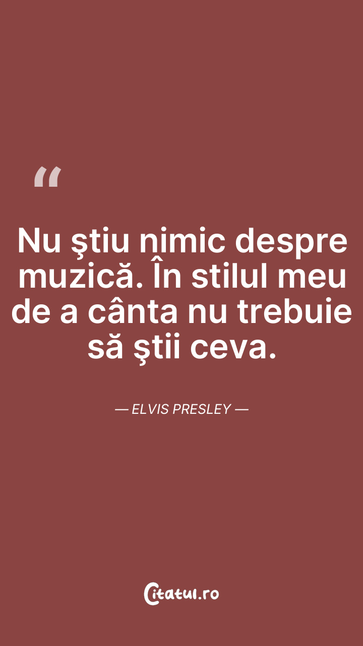 Nu ştiu nimic despre muzică. În stilul meu de a cânta nu trebuie să ştii ceva. Elvis Presley