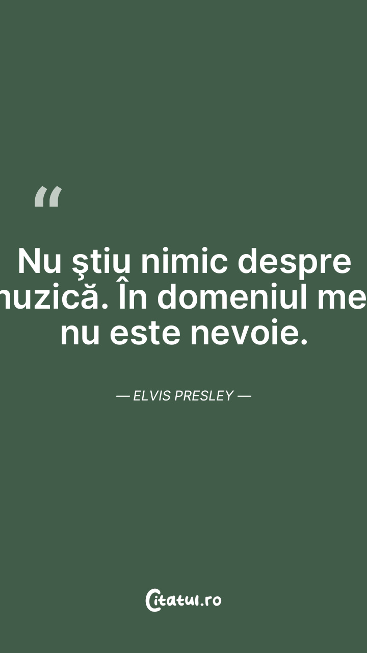 Nu ştiu nimic despre muzică. În domeniul meu nu este nevoie. Elvis Presley