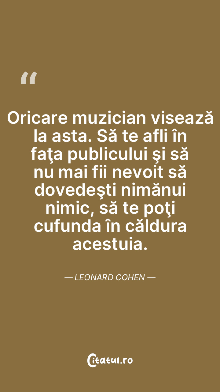 Oricare muzician visează la asta. Să te afli în faţa publicului şi să nu mai fii nevoit să dovedeşti nimănui nimic, să te poţi cufunda în căldura acestuia. Leonard Cohen