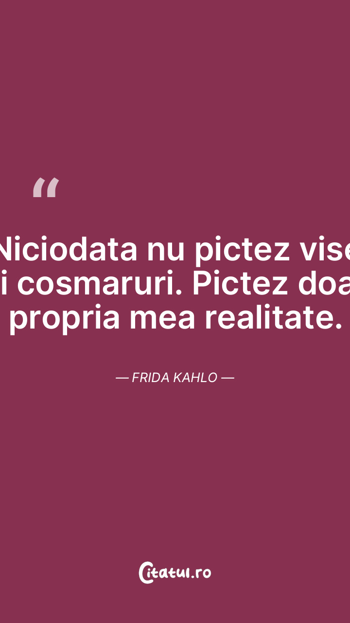 Niciodata nu pictez vise si cosmaruri. Pictez doar propria mea realitate. Frida Kahlo