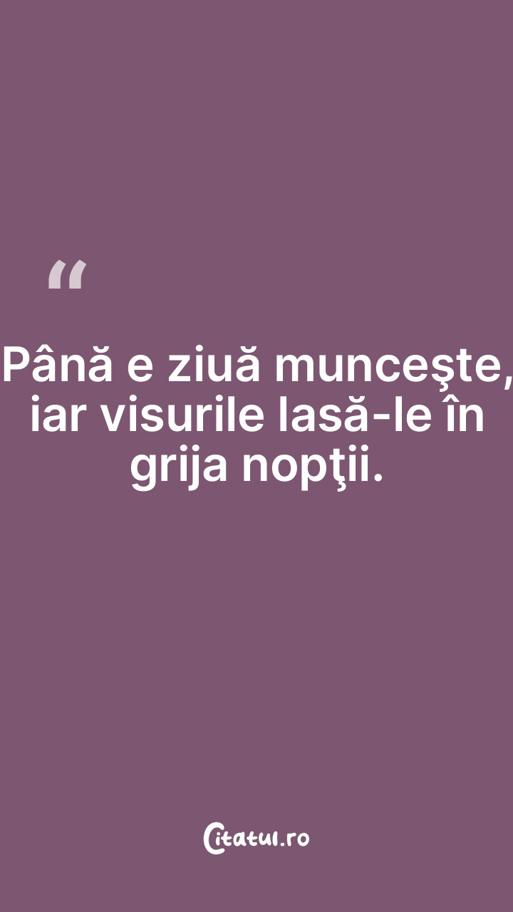 Până e ziuă munceşte, iar visurile lasă-le în grija nopţii.