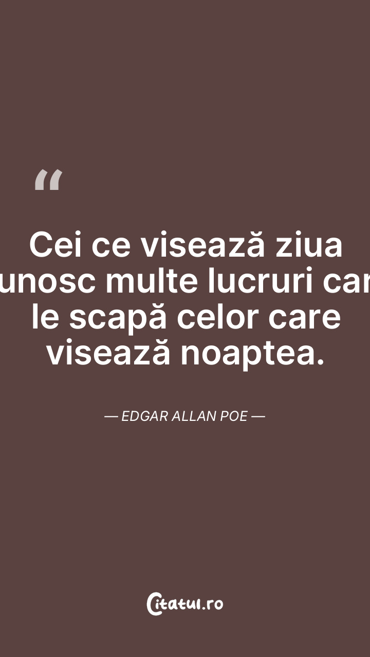 Cei ce visează ziua cunosc multe lucruri care le scapă celor care visează noaptea. Edgar Allan Poe