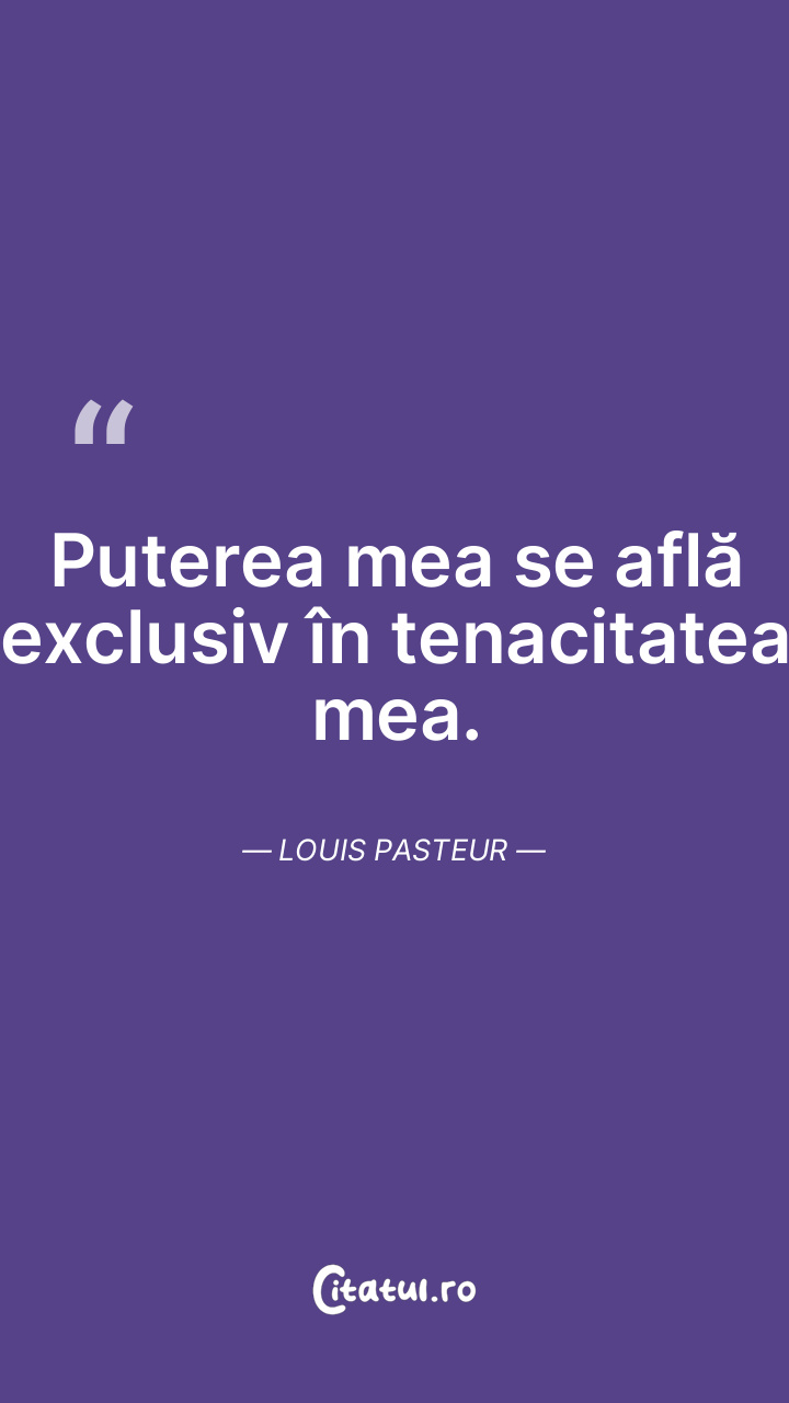 Puterea mea se află exclusiv în tenacitatea mea. Louis Pasteur