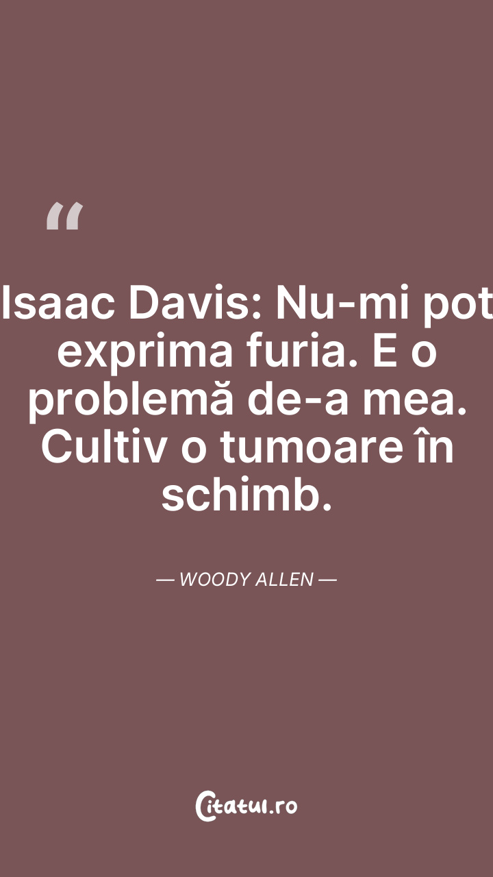 Isaac Davis: Nu-mi pot exprima furia. E o problemă de-a mea. Cultiv o tumoare în schimb. Woody Allen