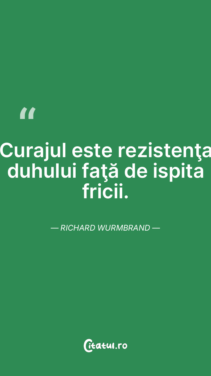 Curajul este rezistenţa duhului faţă de ispita fricii. Richard Wurmbrand