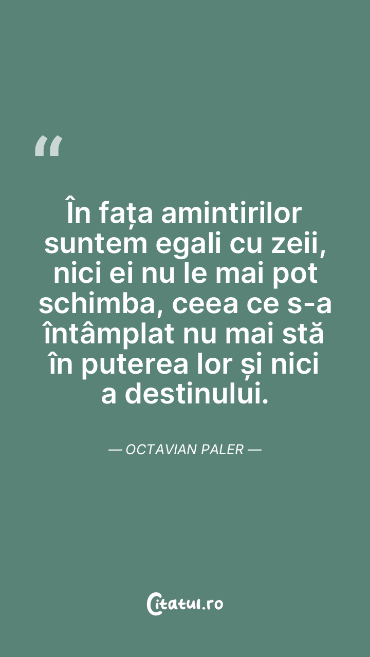 În fața amintirilor suntem egali cu zeii, nici ei nu le mai pot schimba, ceea ce s-a întâmplat nu mai stă în puterea lor și nici a destinului. Octavian Paler