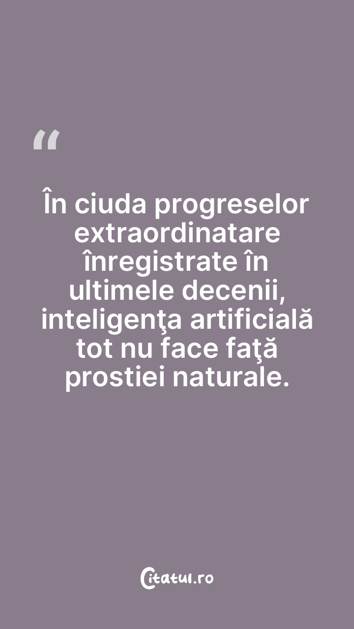 În ciuda progreselor extraordinatare înregistrate în ultimele decenii, inteligenţa artificială tot nu face faţă prostiei naturale.